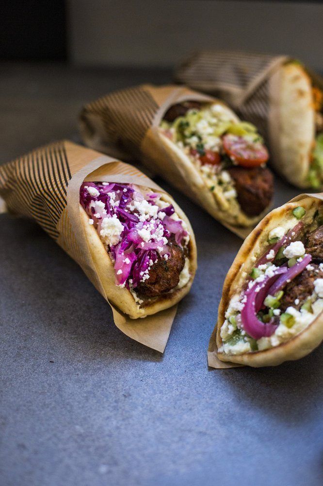 Spicy lamb meatballs, avocado, Crazy Feta®, red pepper hummus, pickled onions, lentils, lemon herb tahini, more