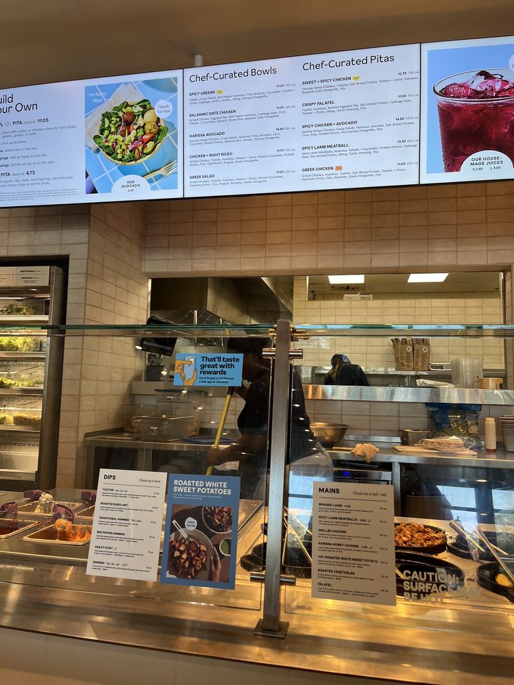 The menu boasts a tantalizing array of options, allowing you to mix and match your favorite ingredients. Highlights include the Harissa Avocado Bowl featuring zesty chicken and Crazy Feta®, and the savory Falafel Crunch bowl packed with roasted veggies and house-made hummus. For pita lovers, the Spicy Chicken + Avocado pita is a must-try, marrying flavors seamlessly.